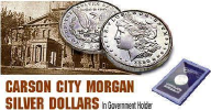This historic coin is a valuable memento of an era in American history when pioneers were challenging the West. The silver in this dollar was mined from the rich Comstock Lode, discovered in the mountains near Carson City, Nevada. The Carson City Mint was established there in 1870, and although it was in existence for a mere 24 years, it produced many coins which have endured as collectors' items, among them the 13 piece Morgan dollar series of 1878-1893. Their link with an historic period in our nation's history give these dollars an added appeal. This coin is an uncirculated specimen of the Morgan dollar, containing ninety percent silver, which somehow survived the massive coin melts of the early 1900's. This piece is also from a hoard of mint condition Carson City dollars, discovered by a Treasury audit in 1964 and issued by the General Services Administration in the early 1970's. They were discovered after nearly a century of obscurity in the vaults.